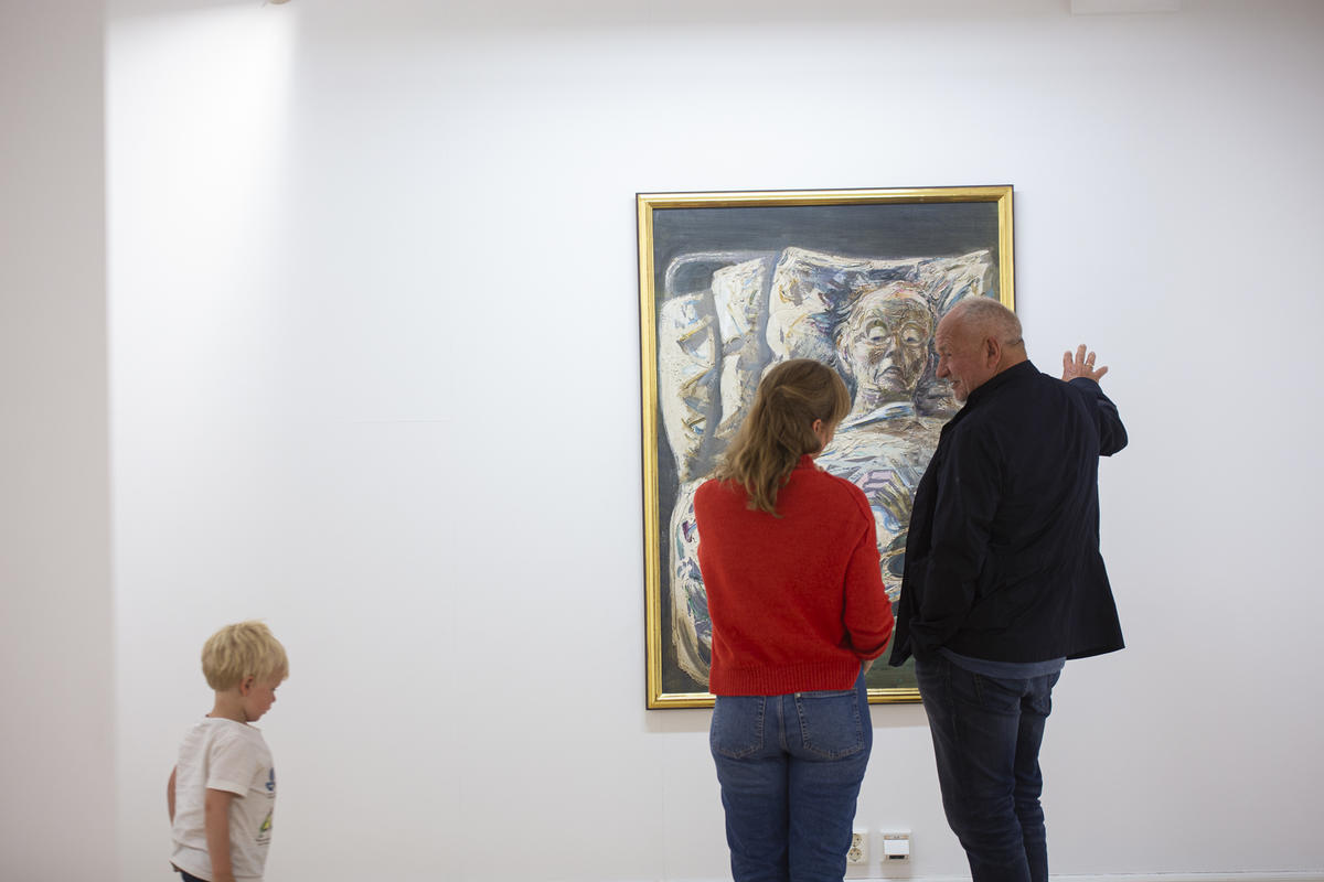 I alle rommene har dere bilder av Bleken som beskriver den arketypen som dere tolker, blant annet Kristus stiger ned i dødsriket fra 1985 i «barne-rommet» og portrettet av Arne Nordheim fra 2008 i «kunstner-rommet». Hva sa Bleken til det?