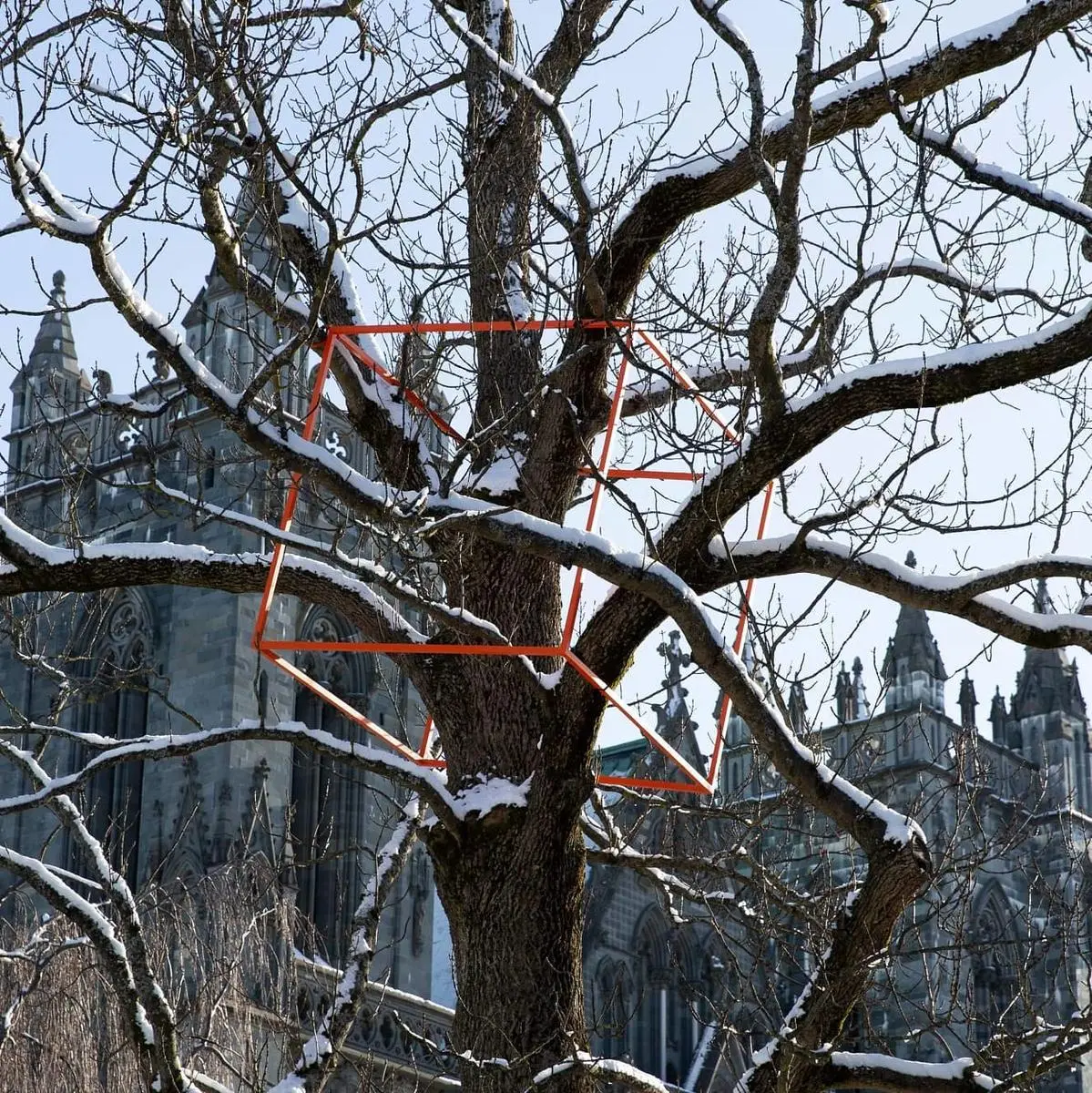 Oddvar Daren’s 10 m3 of Tree Crown (2020) goes through the motions of measuring in a straightforward fashion. It reflects on the scale of man in relation to nature, and how we perceive this, by selecting a sample to measure and a method of framing it. The work stem from a series of actions carried out in nature called Hemmelige hendelser (Secret Events). Cubes marking a volume of stone or shrubs and traces of other operations were left in wild nature, with no indication why they had been marked out. A blind act of quantifying left behind as an act of acknowledgement.