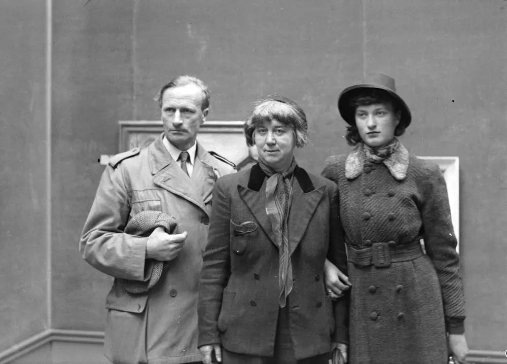 Hans, Hannah and their daughter Mona Ryggen at Tronhjem Kunstforening, 1945. Foto:Schrøder/Sverresborg Trøndelag Folk Museum