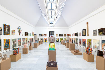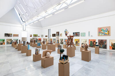 Kristensen composes expansive and complex installations, made up from a plethora of individual works, often with a restricted set of themes. The use of repetitions and recycling are one of the reasons that the individual works seem to dissolve in the multitude of objects. The experience may at times be overwhelming. Kristensen has also allowed himself to have a go at the “geamtkunstwerk” par excellence, namely the opera, and he has no fear at all of the colour brown. His works appear to be sincere and full of irony and at the same time. They are heartfelt and maybe full of longing for the creative power of art, but they keep an ironic distance to the role of art in a political and economic market.