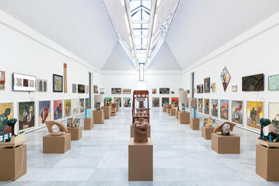 Steinar Haga Kristensen (b.1980 in Oslo) works with a wide range of media and formats; painting, sculpture, video, performance etc. His practice is marked by a sort of auto-excavation or digestion where the artist repetitively uses his own artistic activity and motifs as a basis for new repetitions, regardless of media and thematic. His works operate in an anarchist expression which discusses art, form, and meaning, for instance in the frescoes Konsensusbilde, (consensus image) which was produced in Oslo City Hall in 2013 - 2015, as a backdrop for a new opera, composed by Haga Kristensen himself. In the libretto one is guided through an artist’s efforts to complete a commission which is supposed to reflect our own times, which is no longer concerned with that which is great or monumental, but rather focuses on the private and individual. This comprehensive work of art, which has hence become a permanent but hidden part of the city hall, exemplifies how Haga Kristensen in his practice challenges basic conventions for how art finds its place in society and the relationship between an artwork and the viewer. Haga Kristensen is represented by Galleri Brandstrup, Oslo. He has exhibited, among other places, at Bozar, Brussels, Belgium; at Passerelle, Brest, France; in the Centre for Contemporary Art, Vilnius, Lithunia; at WIELS Contemporary Art Center, Brussels; in the Kunsthall Oslo; Witte de With, Rotterdam, the Netherlands; the Museum for Contemporary Art, KODE, Bergen, Kunsthal Aarhus, Aarhus, Etablissement d’en face, Brussels, Belgium, UKS, Oslo, and Den Frie, Copenhagen, Denmark.