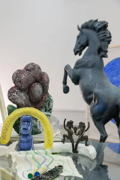Anna Daniell works non-traditionally in a style rich in historical art references. She invites a playful dialogue between people and objects, where her sculptures converse with wit and humor with other participants and insist on being part of the company, part of the community. They are also fumbling and searching, a little clumsy as they dangle and balance to find their place. These staged situations challenge the rational understanding that objects are only things, something we create and use, without a life of their own, and not something that also influences and shapes us in the process. Daniell turns the materials' value hierarchy around and opens up our shells for new perspectives, where the interaction between human bodies and bodily objects begins to oscillate.