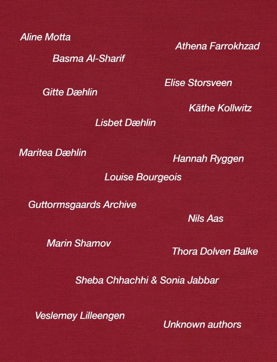 Prosessen med å skape denne utstillingen har i seg selv vært flytende og åpen, formet av tilfeldigheter, drømmer, samtaler med kunstnere og forskere og skiftende politiske realiteter. Vi omfavner denne ufullstendigheten, og ser i den den samme ustrukturerte generøsiteten som ligger til grunn for moderskapet: en stadig utfoldende handling som aldri helt kan ringes inn.