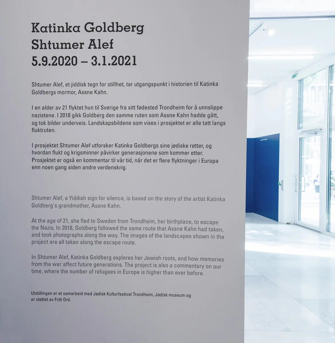 I prosjektet Shtumer Alef utforsker Katinka Goldbergs sine jødiske røtter, og hvordan flukt og krigsminner påvirker generasjoner som kommer etter. Prosjektet er også en kommentar til vår tid, når det er flere flyktninger i Europa enn noen gang siden andre verdenskrig.