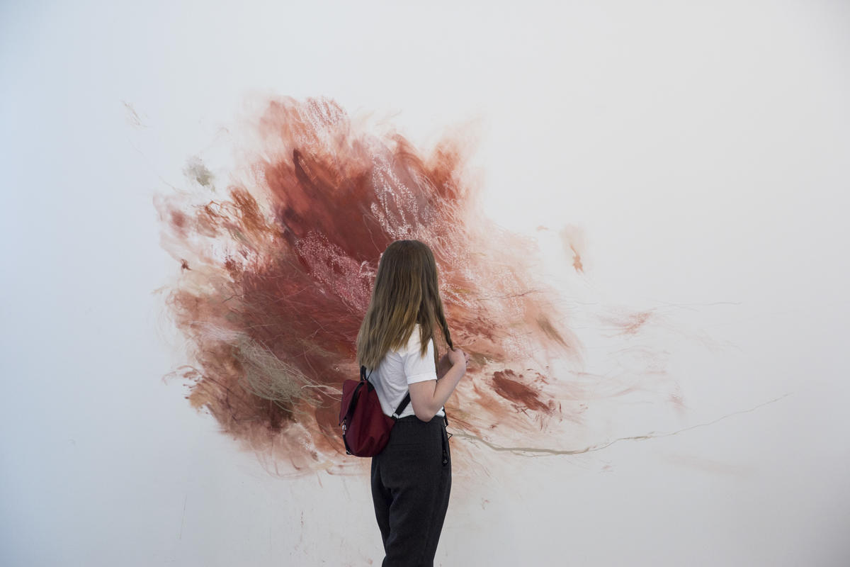 Mixed media installation. Pastel, dirt, lead pencil on linen and wall.