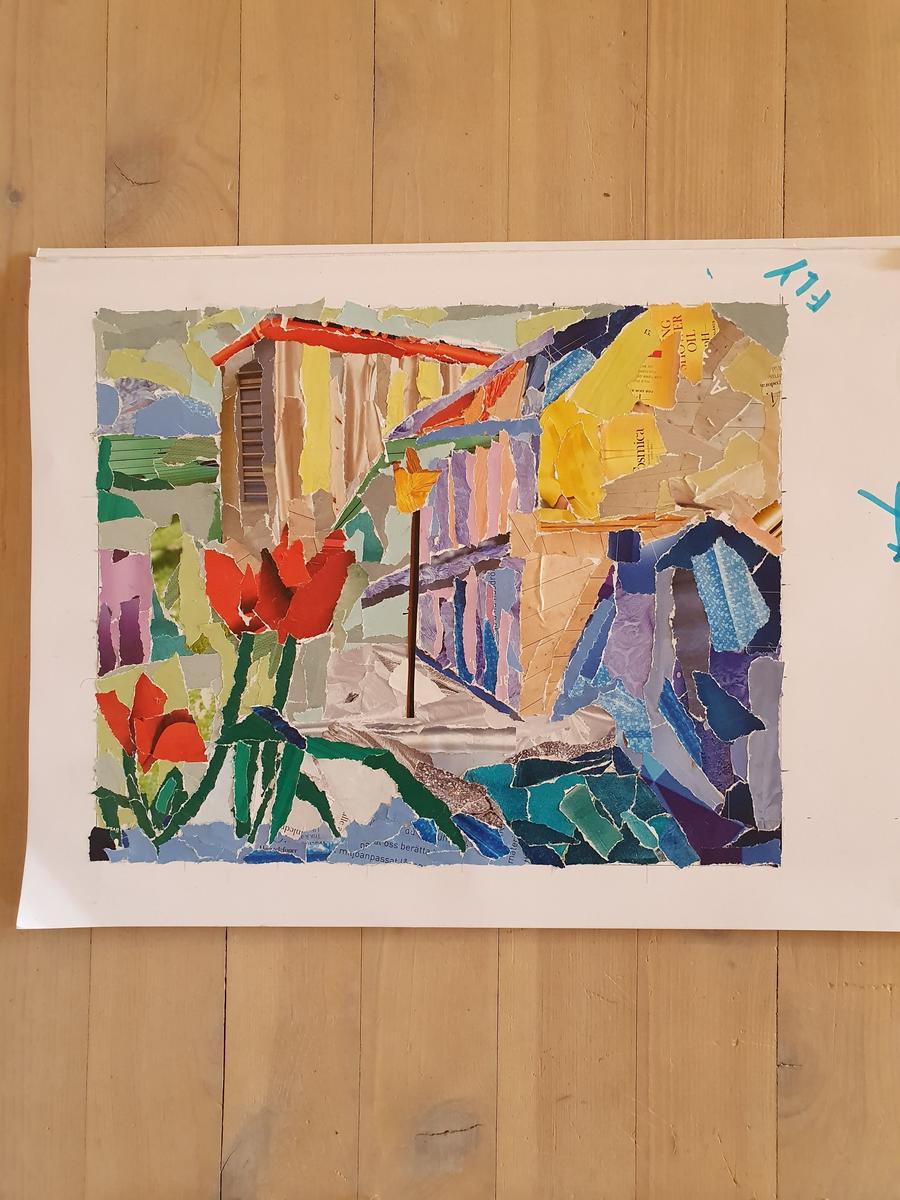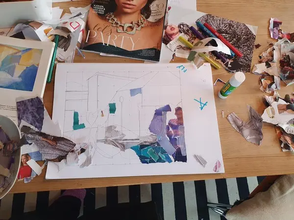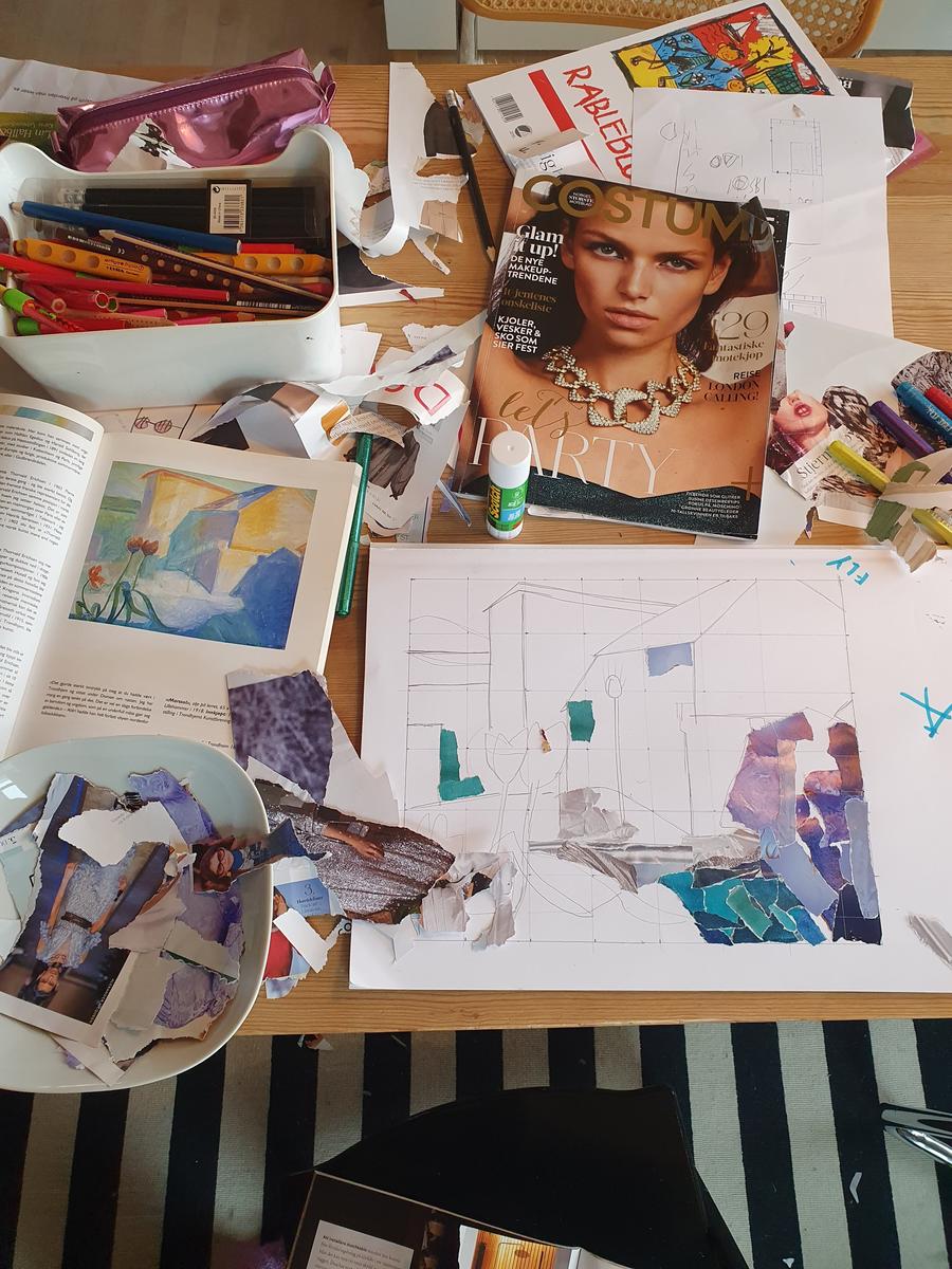 Klipp ut ulike elementer som har samme farge eller overflate som delene du ser i bildet. Lim den inn i feltene. Minner det ikke litt om sette sammen et puslespill?