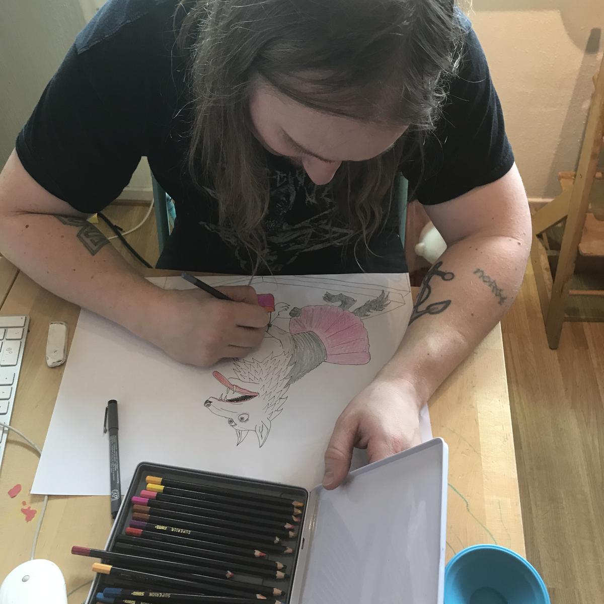 Finn frem tegnesaker eller annet som du kan lage en Skrubbemor med. Om du ikke vil tegne kan du kanskje prøve å perle, eller lage en Skrubbemor i leiere, eller kanskje av dorull? Se hva du kan finne hjemme.