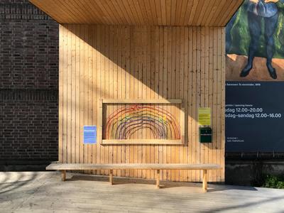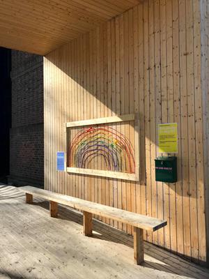 Har du lagt merke til alle regnbuene i vinduene rundt omkring? De har blitt et symbol på håp i tiden vi er i nå. Vi har hengt opp en stor regnbue på baksiden av museet i Bispegata, men vi trenger hjelp til å fylle den med farger!