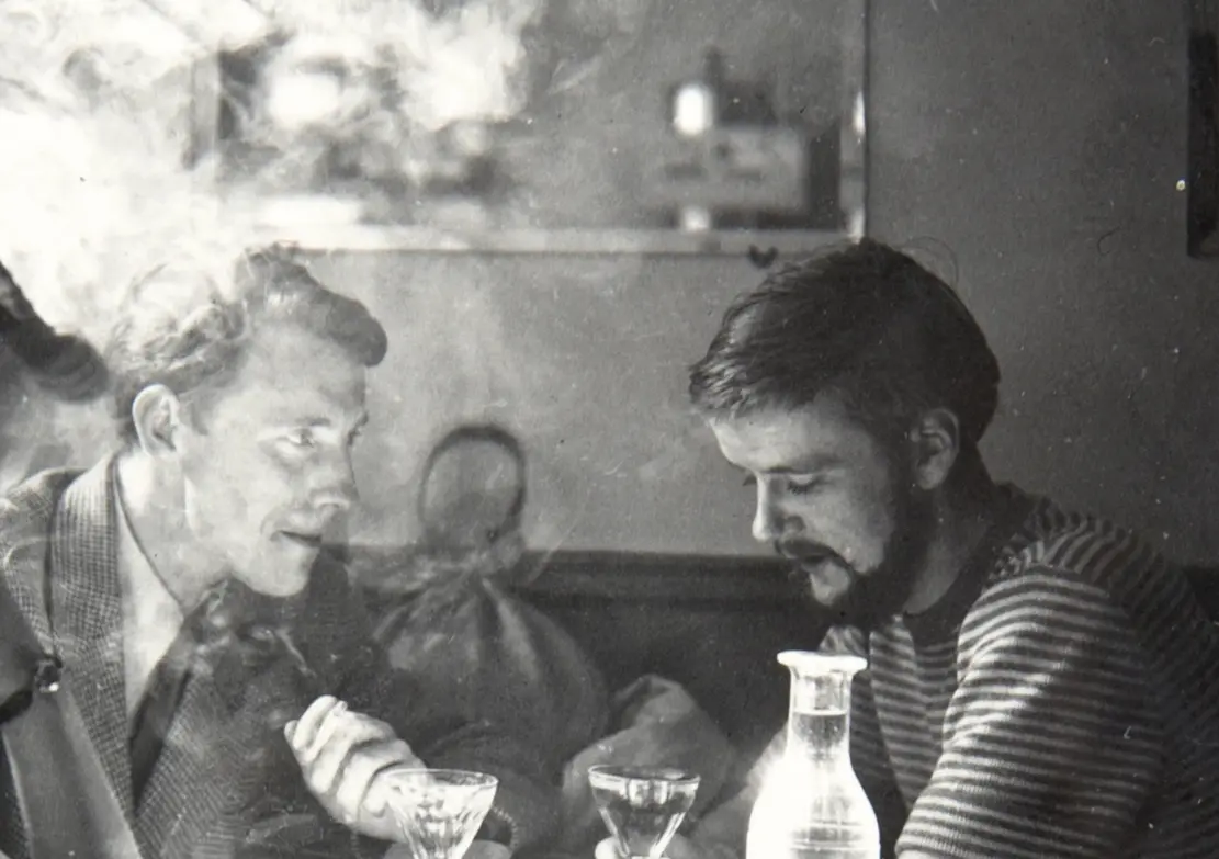 Roar Wold og Lars Tiller på café i Paris, 1951