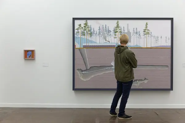 Gjennom 40 år har han markert seg som en av Norges mest fremtredende malere. Leonard Rickhards billedverden er preget av oppveksten etter 2. verdenskrig, med motiv som militærbrakker, kampfly og andre kjøretøy, tversnitt av landskap og bygninger, interiører med modellflybygging og fuglesamlinger. Rickhards malerier er blitt kalt melankolsk og oppfattes ofte som gåtefull og på samme tid analytisk. Han er godt forankret i vestlig malerisk tradisjon, hvor for eksempel Poussin og Seurat kan nevnes som inspirasjonskilder. I hele andreetasjen i TKM Bispegata vil vi vise et omfangsrikt utvalg av tegninger og malerier fra 1990 frem til i dag.