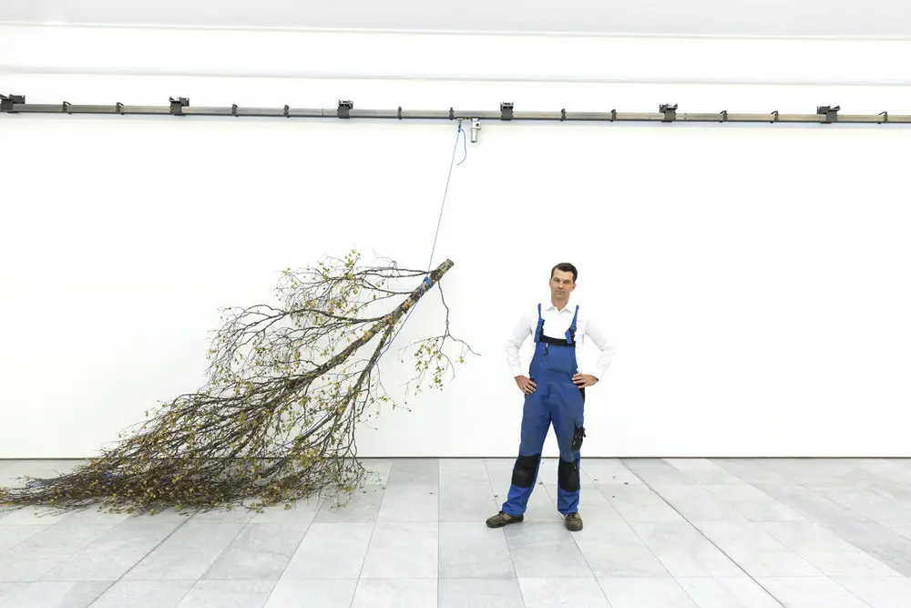 Mattias Härenstam lar et bjørketre definere museumsrommet. Bjørken henger opp ned og trekkes sakte langs veggene. Det er som I.C. Dahls Bjerk i storm; et kulturhistorisk referansepunkt vendt på hodet, som med sin kontinuerlige bevegelse både avgrenser og begrenser publikums mulighet til å bevege seg. Til tider blir inn- og utganger sperret, og vi ender opp med å bli både fanget og stengt ute.