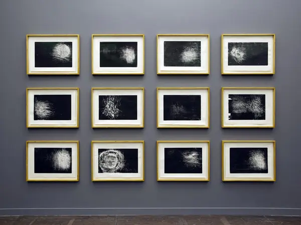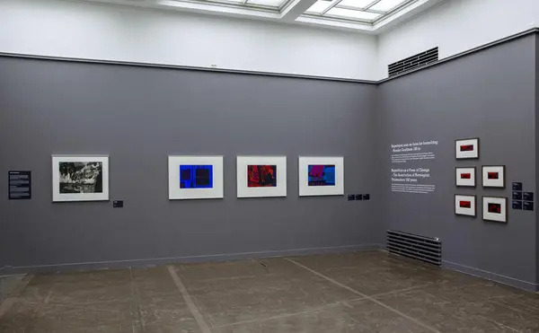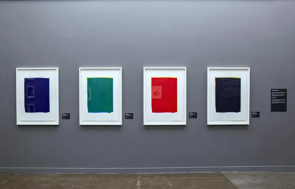 I förstone kan bilderna se ut som enfärgade rektanglar, men när man ser närmre på dem så ser man i de upplösta kanterna att de består av ett par lager färg, tryckta med silketrykk.