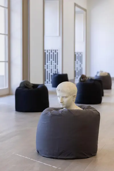 Sokkelen er det elementet som utmerkar skulpturen ved å løfte den opp. Desto høgare eller større sokkelen er, desto viktigare er også skulpturen eller det den representere. I utstillinga finn du fleire portrettbyster, både av viktige kjente personar, men også anonyme skikkelsar og privatpersonar. I utstillinga Å gjere det mjukt er det inga slik forskjellsbehandling. Keisar Augustus av Christopher Borch presenterast på same måte som vesle Knut av Tone Thiis Schjetne.