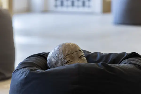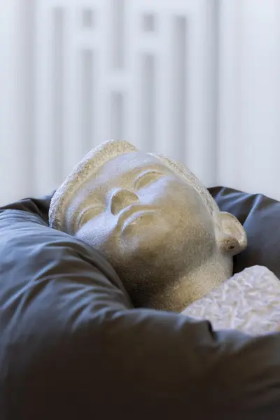 Å ta skulpturane ned frå dei klassiske pidestallane gjer dei på eit vis meir sårbare. Som om du finn dei i det dei skal til å sovne, eller nettopp har vakna – eit augneblikk som både er privat og intim. Fleire av skulpturane blir oppbevart slik i magasinet. Dei ligg der å ventar på å bli tatt fram og syna til publikum.