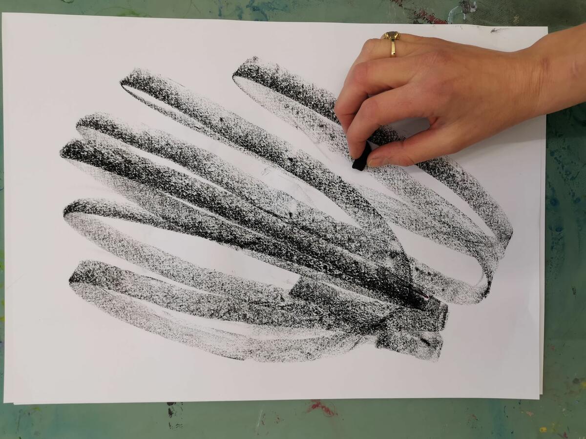 1. Snu arket og tegne streker i en ny retning og ny farge. Prøv å tegne både med masse kraft og så svakt som mulig.