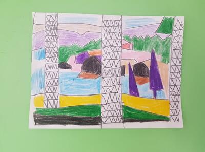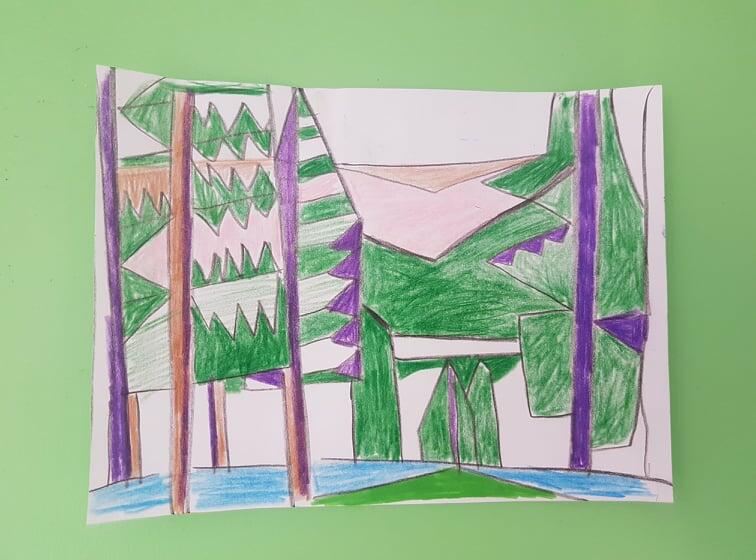 1. Tegn linjer i bakgrunnen av motiver, slik at hele bildet blir delt opp i felter.
