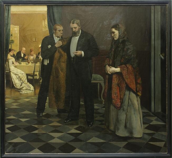 Du venter alene i en kald og mørk gang. En dresskledd mann kommer ut fra en dør. Det strømmer lys og varme fra rommet bak ham, og du skimter en feststemt gjeng sittende rundt et bord. De har på seg vakre klær. Du kjenner lukten av den gode maten og hører klirring av glass og latter. Mannen virker irritert over at han må forlate det hyggelige selskapet, og ber om at noen finner en jakke til han.