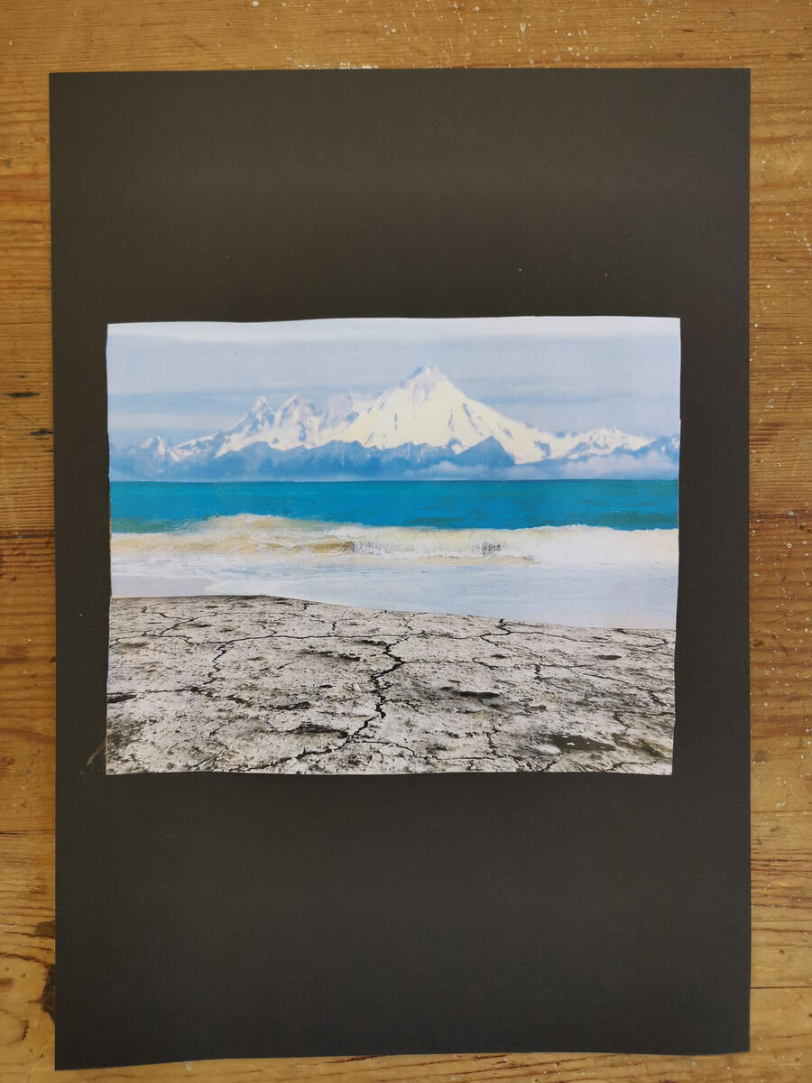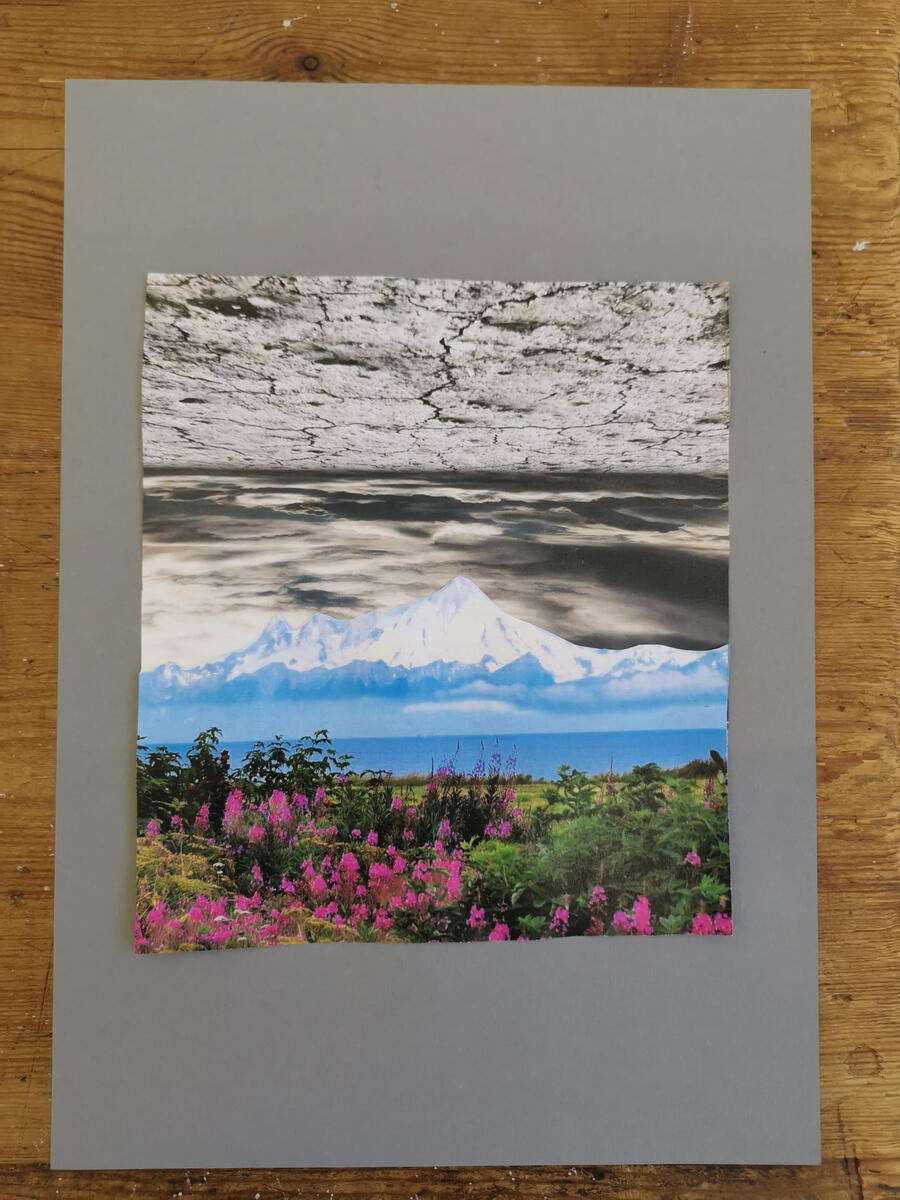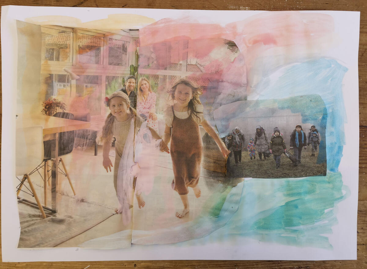 Klipp ut det som er viktig fra fotoene og lim de sammen til et motiv.