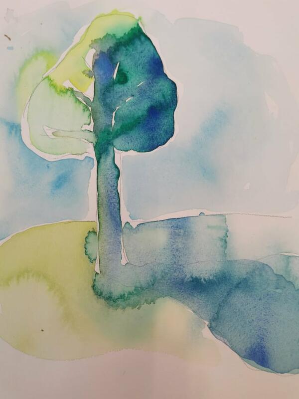4. Akvarellmaling har en tendens til å flyte inn i hverandre. Derfor kan det være lurt å ikke la det våte områdene treffe hverandre, eller vente såpass at det er ganske tørt før du maler mer.