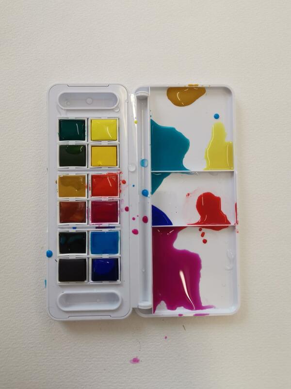 • Akvarellfarger eller vannmaling (akrylfarge blandet med vann går også)