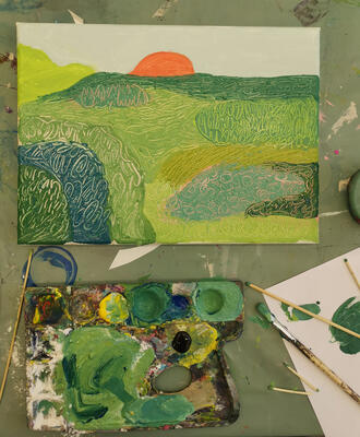 Se for deg at du er på togferie i et annet land og kikker ut på landskapet. Toget suser forbi en åker med de utroligste vekster i forskjellige former og grønntoner, som beveger seg med vinden. Du skulle ønske du kunne kjenne på de ulike formene, samle alt det du ser i et bilde.