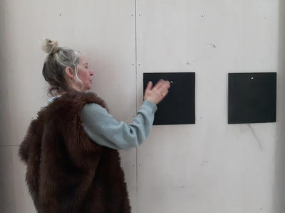 'Det er kort vei mellom tanken og blyanten, en uredigert direkthet. I mange av verkene for utstillingen på Gråmølna bruker jeg min egen kropp, stemmen min og håndskriften.'