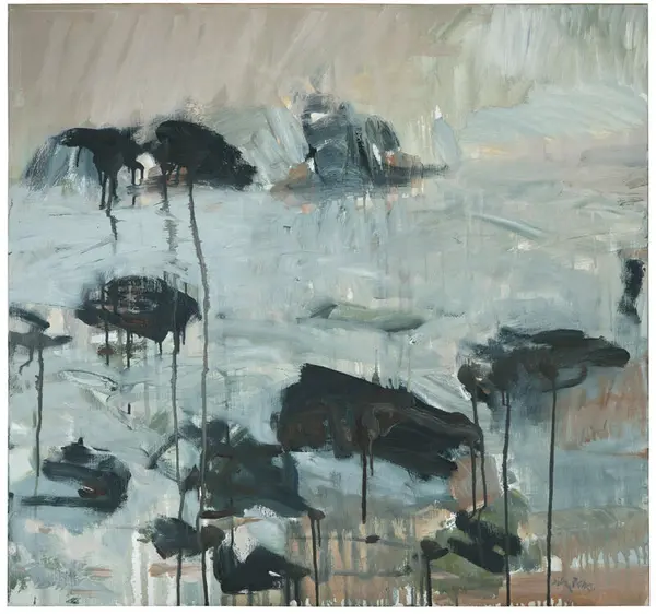 Solrunn Rones (f. 1951) Flo - bevegelse, 2021. 70 x 75 cm, olje på lerret / oil on canvas. Kjøpt 2021 for ekstraordinære stimuleringsmidler til kulturlivet under Covid-19-pandemien.