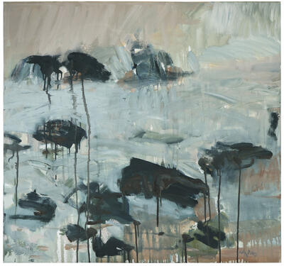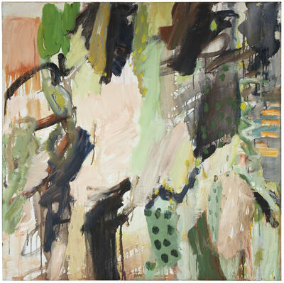 Solrunn Rones (f. 1951) Skog - skisse, 2021. 85 x 85 cm, olje på lerret / oil on canvas. Kjøpt 2021 for ekstraordinære stimuleringsmidler til kulturlivet under Covid-19-pandemien. - 2/2