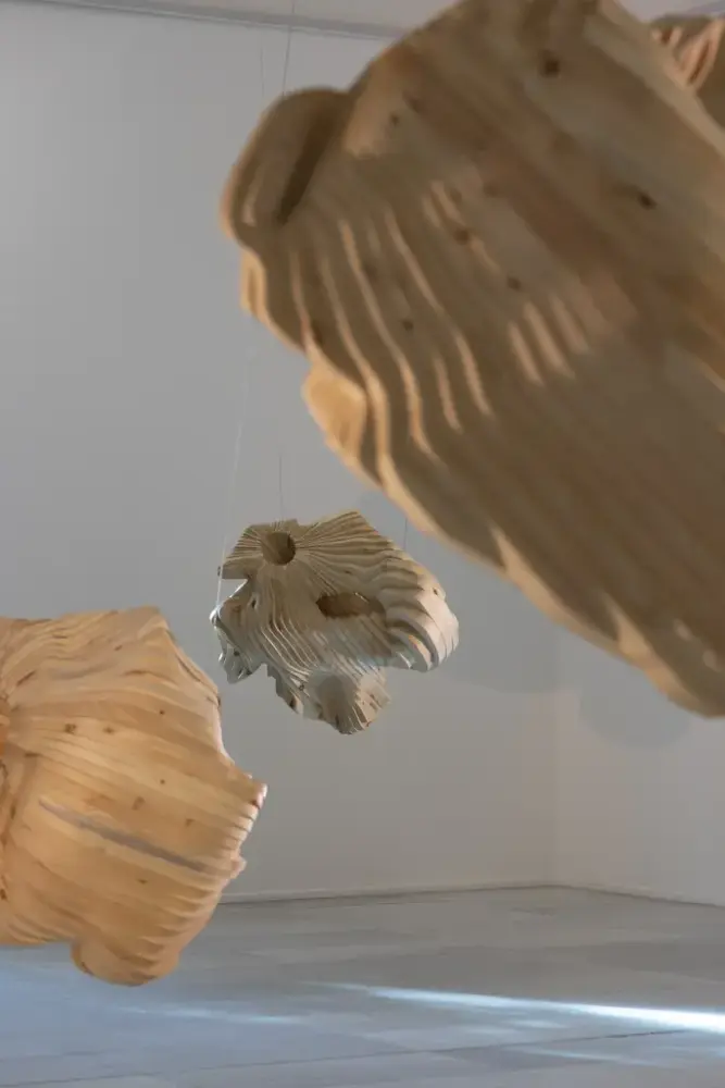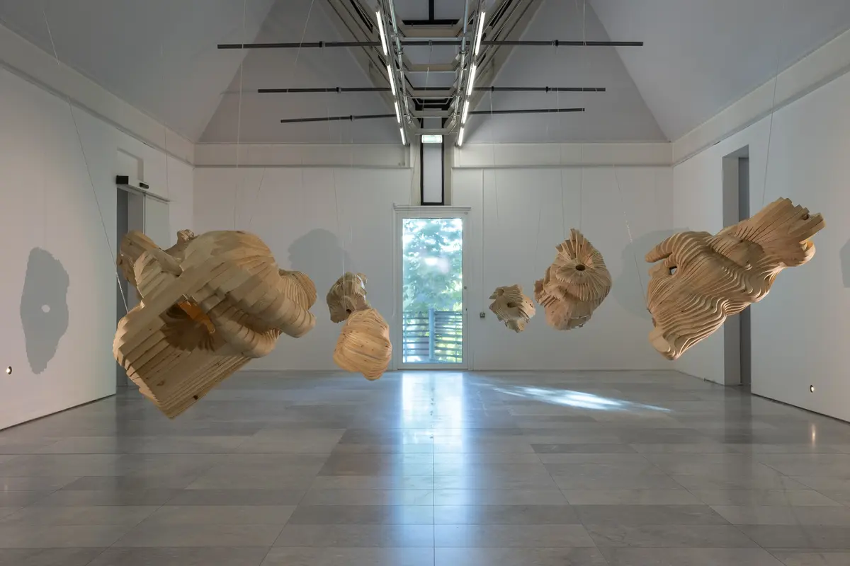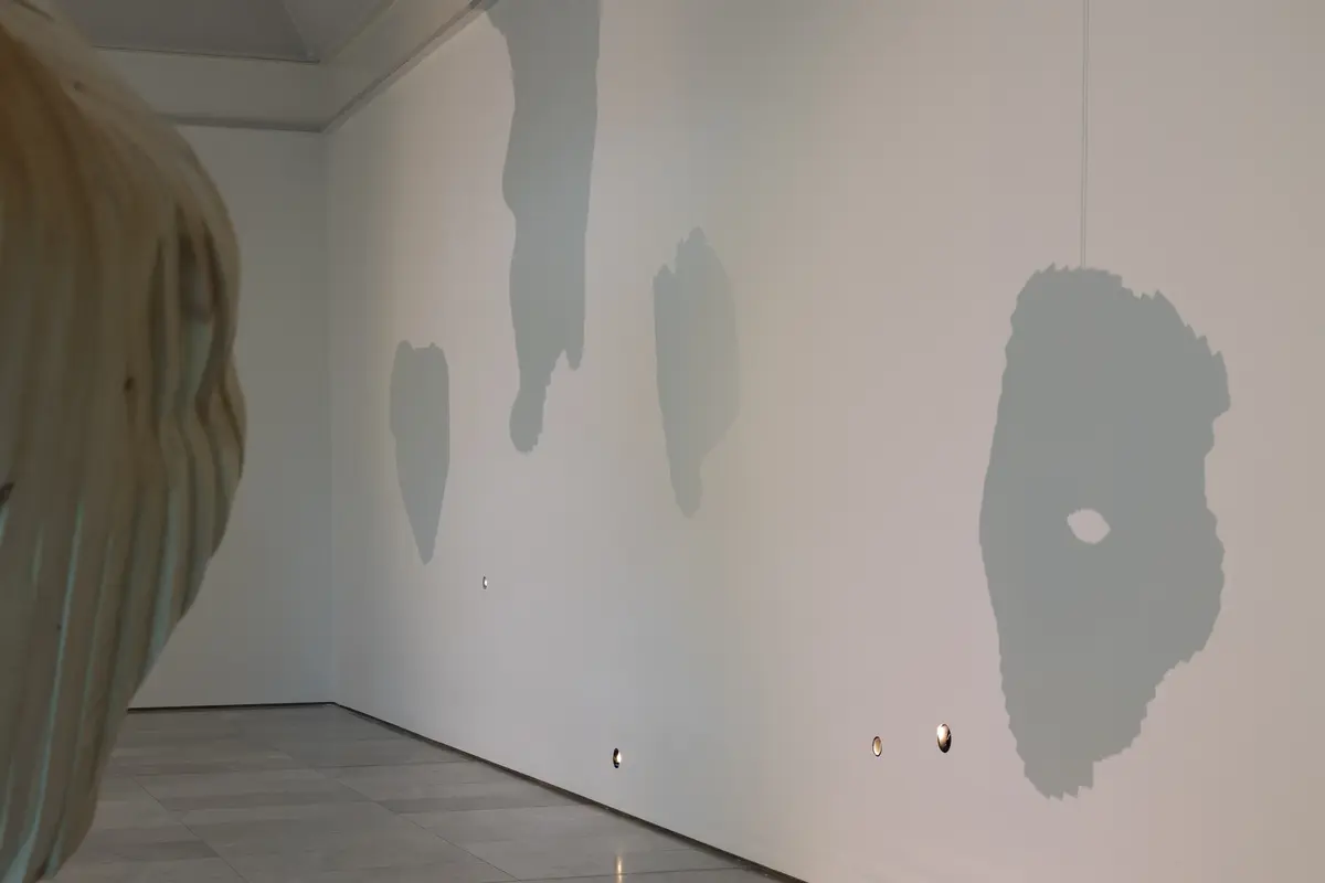 For Lorck Schive Kunstpris 2025 viser Toril Johannessen verket Bunden form: Syv skulpturer svever i rommet. De er lyssatt, og kaster ulike skyggespill på gulv- og veggflater. Skyggene blir nye skulpturelle former som endres ut frahvordan lyset treffer de