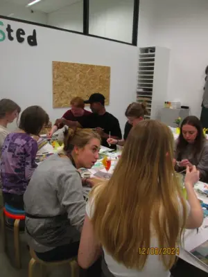 I juni holdt Unge skapere en lavterskel workshop med masse gratis snacks og mer snacks. Alle ble vist rundt i utstillingen "Else Hagen. Mellom mennesker", av ungdommen, og fikk gjenskape et maleri av Else Hagen i verkstedet.