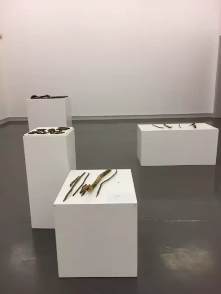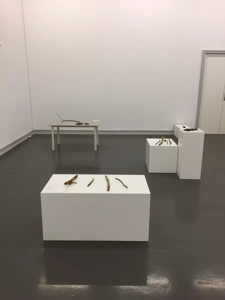 Kunstneren Øystein Viem har laget en utstilling som kan betraktes både med øyne og hender. Her kan barna bli kjent med materialet tre gjennom å observere skulpturene, mens de samtidig får hver sin trebit og et stykke sandpapir. Hva skjer med overflaten? Hva kan man bruke tre til, og hvordan brukte man det før i tiden? Hvilke tresorter kjenner vi til, og hvordan oppfører de ulike sortene seg? Hva er form og hvordan kan vi forme?